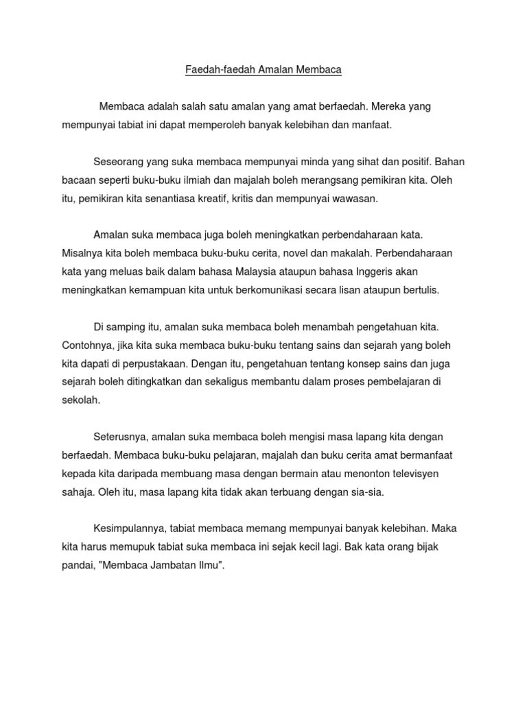 Jadikanlah amalan membaca buku amalan harian. Faedah paling utama dalam mengamalkan budaya membaca ialah ia akan . Contoh karangan kepentingan dan manfaat amalan membaca dalam melahirkan. Memupuk amalan membaca namun, budaya membaca dalam masyarakat masih rendah. Mereka yang mempunyai tabiat ini dapat memperoleh banyak kelebihan dan manfaat.